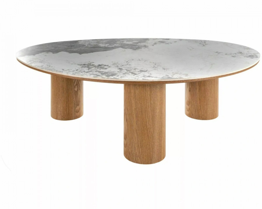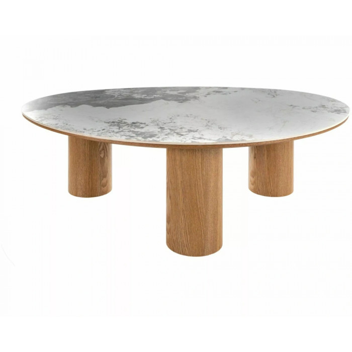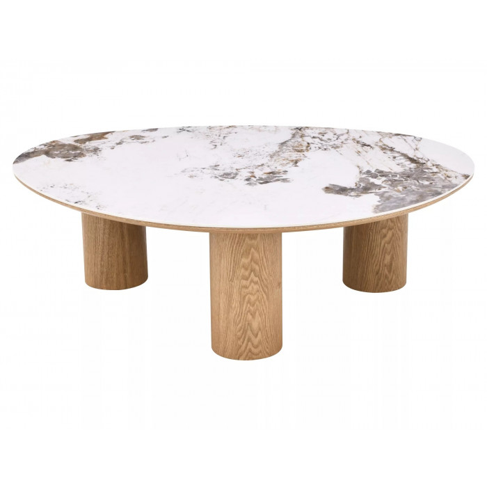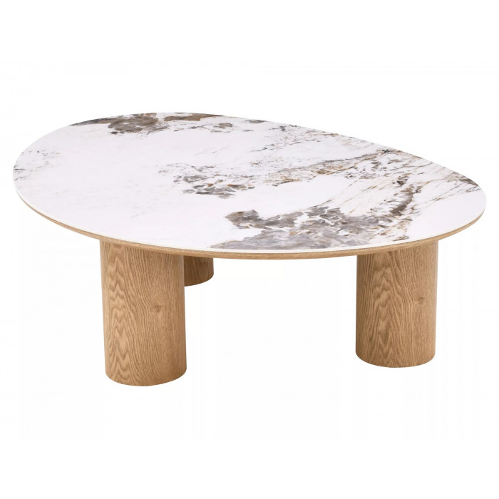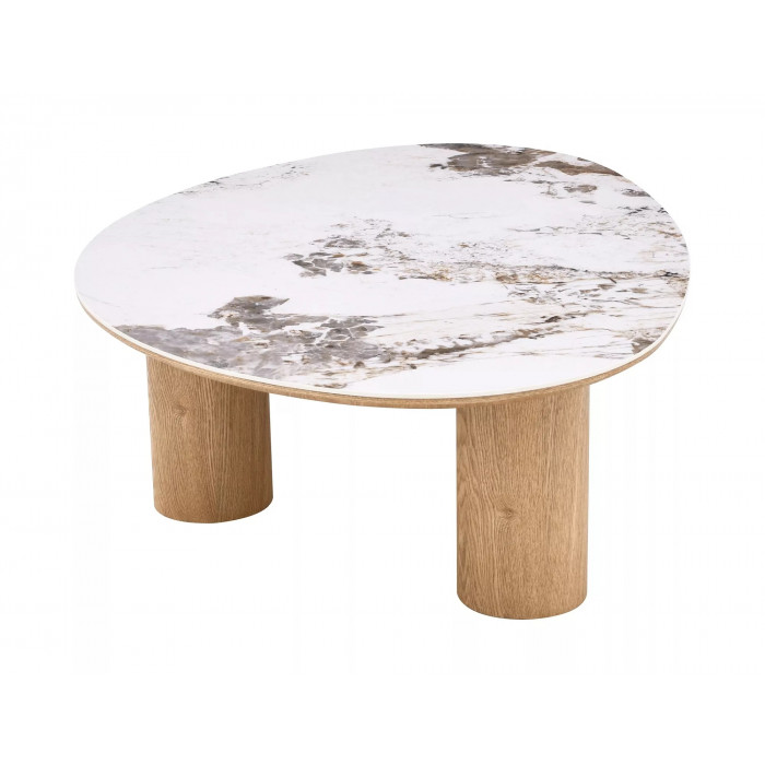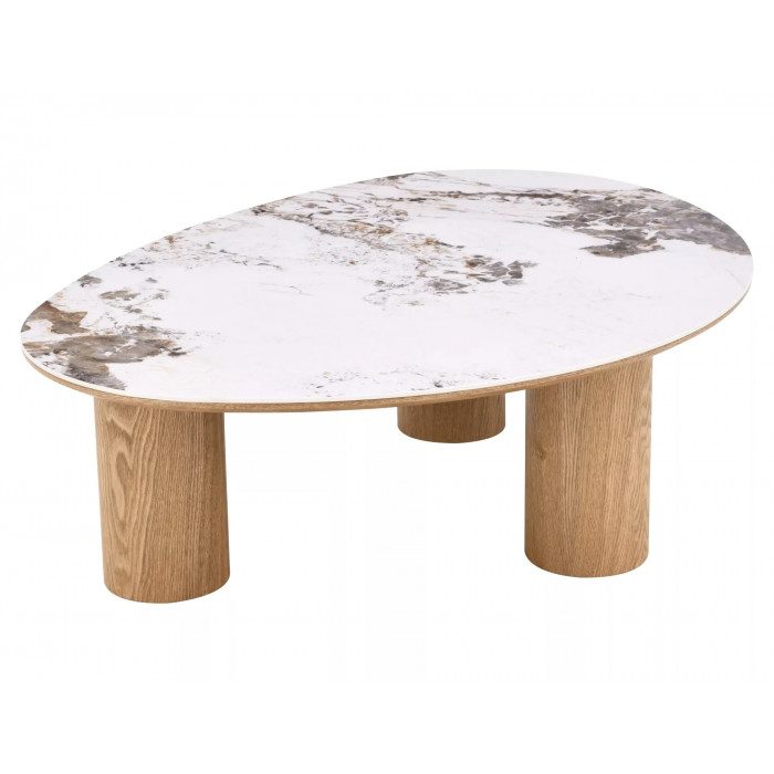 Журнальний столик, стільниця: МДФ + кераміка Pandoro, каркас: МДФ + натуральний шпон, колір: глянцевий білий / дуб.
