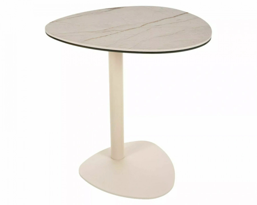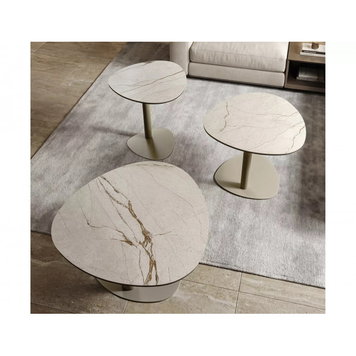 Журнальний столик, стільниця: загартоване скло + іспанська кераміка Amazonia, каркас: метал, колір: матовий бежевий / кашемір.