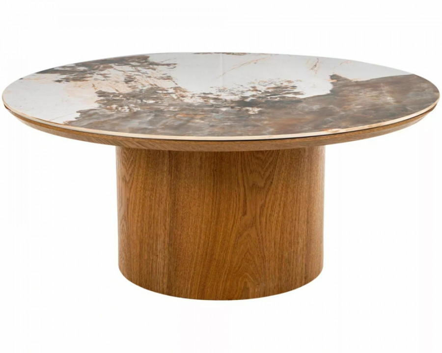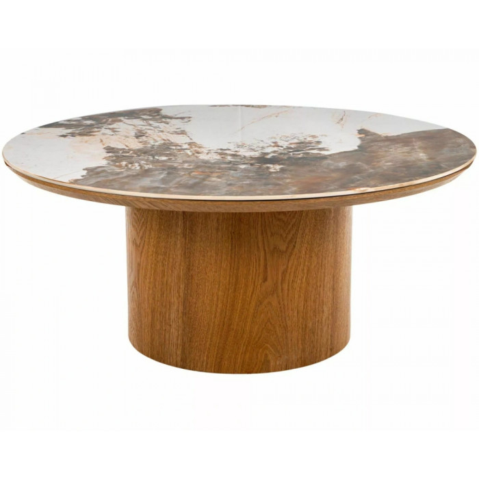 Журнальний столик, стільниця: МДФ + кераміка Pandoro, каркас: МДФ + натуральний шпон, колір: глянцевий білий / дуб.