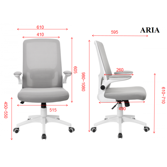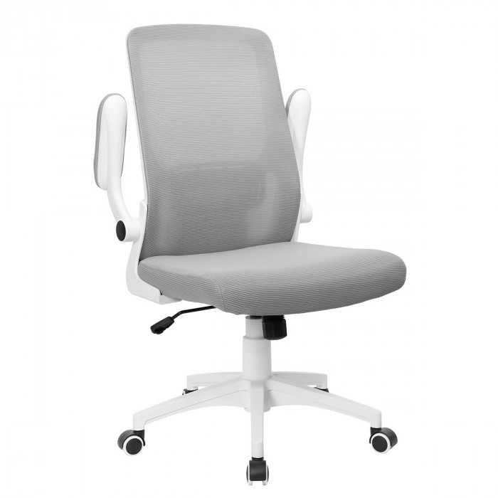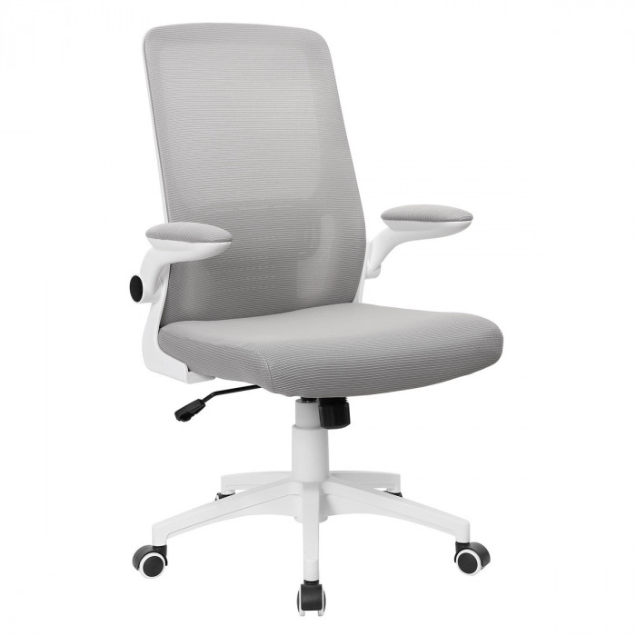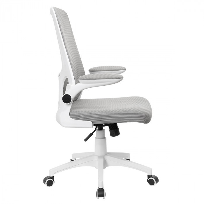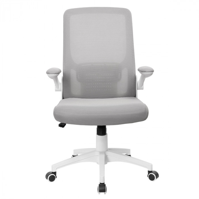 Матеріал крісла: мембранна сітка, Колір: сірий Каркас: білий Додаткова інформація: механізм TILT, рухомі (відкидні) підлокітники, високоякісний газліфт, міцна нейлонова основа, безшумні нейлонові колеса, максимальне навантаження 120 кг Розмір коробки: 63*28*59 см