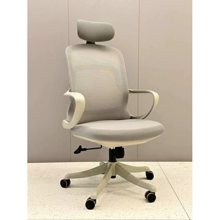 Матеріал крісла: Мембранна тканина-сітка Колір: сірий Каркас: сірий Додаткова інформація: 2D підголівник, каркас спинки з PP, механізм TILT, нерухомі PP підлокітники, губка високої щільності, високоякісний газліфт, міцна нейлонова основа, безшумні нейлонові колеса, максимальне навантаження 120 кг Розмір коробки: 70*30*60 см