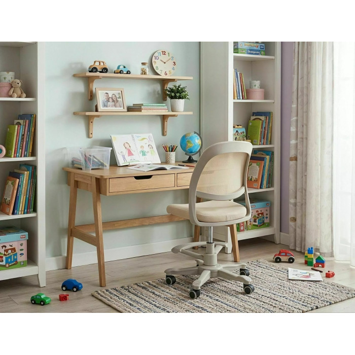 Офісне комп'ютерне крісло, сітка/мембранна тканина, колір: бежевий, обертова підставка для ніг з регулюванням висоти.