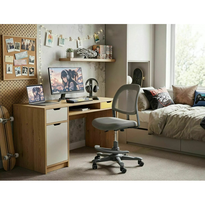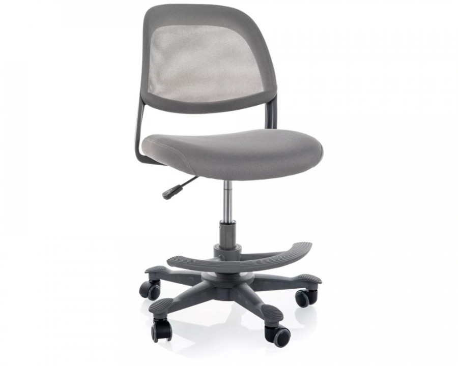 Офісне комп'ютерне крісло, сітка/мембранна тканина, колір: сірий, обертова підставка для ніг з регулюванням висоти.