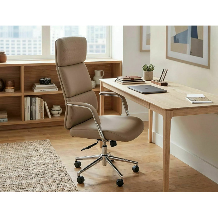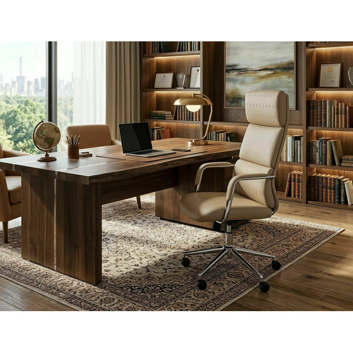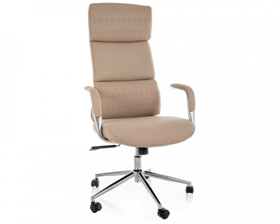 Офісне комп'ютерне крісло, екошкіра, колір: бежевий, мультиблок, фіксовані підлокітники.