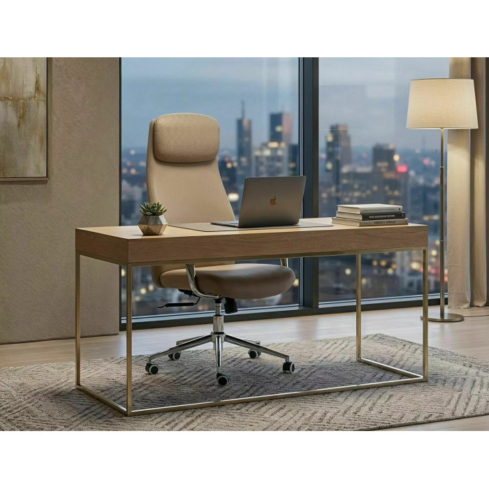 Офісне комп'ютерне крісло, екошкіра, колір: бежевий, мультиблок, регульований підголівник, фіксовані підлокітники.