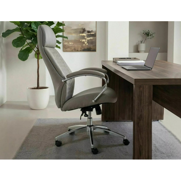 Крісло офісне комп'ютерне поворотне Q-09 Сіра екошкіра / Хром каркас