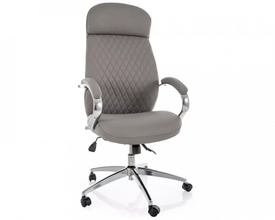 Офісне комп'ютерне крісло, екошкіра, колір: сірий, мультиблок, фіксовані підлокітники.