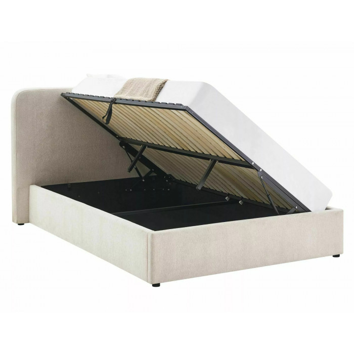 Ліжко з місцем для зберігання, тканина Raven, колір: 24 бежевий. Дерев'яний рейковий каркас у комплекті. Розмір матраца: 160x200 см (ціна без матраців). Бічний каркас - універсальне складання, боковини, що відкриваються ліворуч/праворуч, газові підйомники. Розміри ліжка: A - 219, B - 195, C - 160x200, D - 2, E - 5 F - 33, G - 33, H - 112 см.