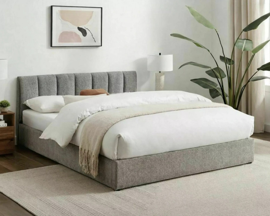 Ліжко з місцем для зберігання, тканина Raven, колір: 07 сірий. Дерев'яний рейковий каркас у комплекті. Розмір матраца: 120x200 см (ціна без матраців). Газові ліфти. Примітка: місце для зберігання з м'якою підлогою. Розміри ліжка: A - 215, B - 127, C - 120x200, D - 3, E - 4, F - 23, G - 26, H - 79 см.