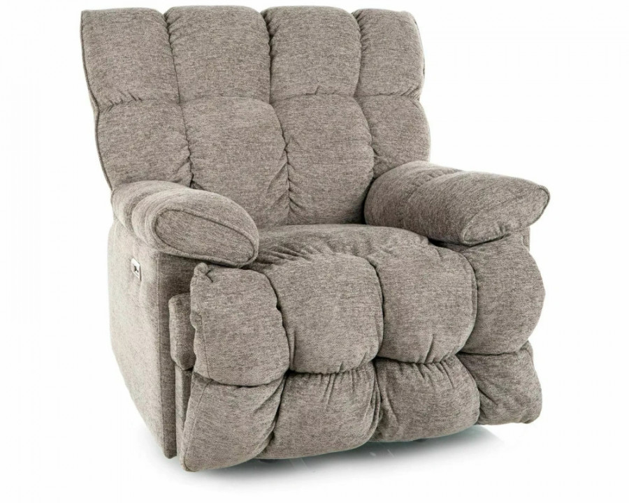 Крісло з електроприводом та функцією гойдання, тканина: Raven, колір: сірий 07. Функція гойдання працює у складеному положенні, USB-порт. Розміри крісла: A - 104, B - 94, C - 51, D - 56, E - 100–160 см.