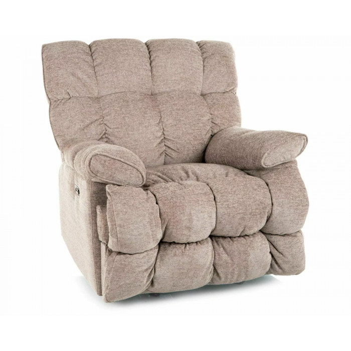 Крісло з електроприводом та функцією гойдання, тканина: Raven, колір: темно-бежевий 30. Функція гойдання працює у складеному положенні, порт USB. Розміри крісла: A - 104, B - 94, C - 51, D - 56, E - 100÷160 см.