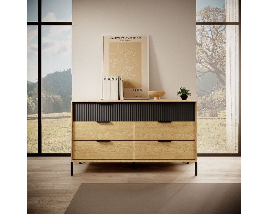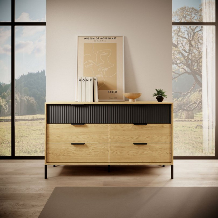 Комод Балтик / Baltic 6S/138 з 6 шухлядами Дуб балтик/чорний! Ця витончена модель від Perfect Home – справжнє втілення стилю та сучасності. Завдяки високій якості та легкості цього предмету меблів, ваш інтер'єр отримає дотик вишуканості та краси. Ми дбаємо про ваше комфортне життя та здоров'я, тому використовуємо тільки екологічно чисті матеріали для виробництва цього виробу, що робить його абсолютно безпечним для вас та ваших близьких. Наш товар постачається в оригінальній упаковці, разом із докладною інструкцією та всіма необхідними комплектуючими, що дозволяє вам легко та без особливих зусиль зібрати його самостійно. Основні характеристики: