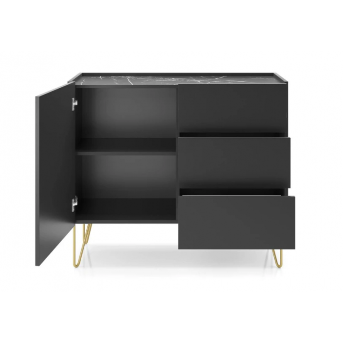 Комод Гармонія / Harmony 1-дверний з 3 шухлядами і золотими ніжками KSZ97 Чорний/чорний мармур роял Ш97xВ83 см.