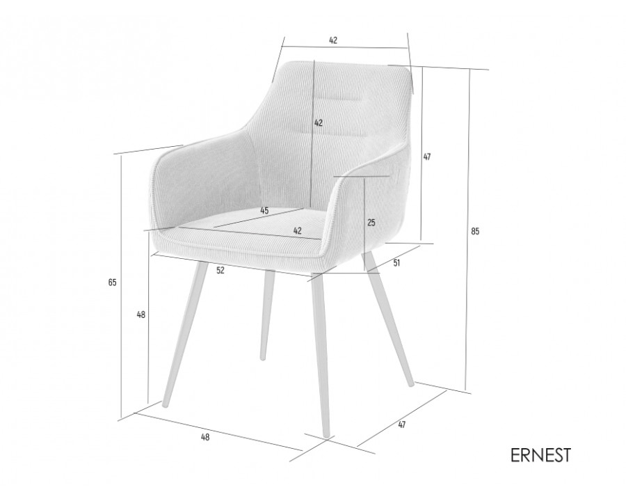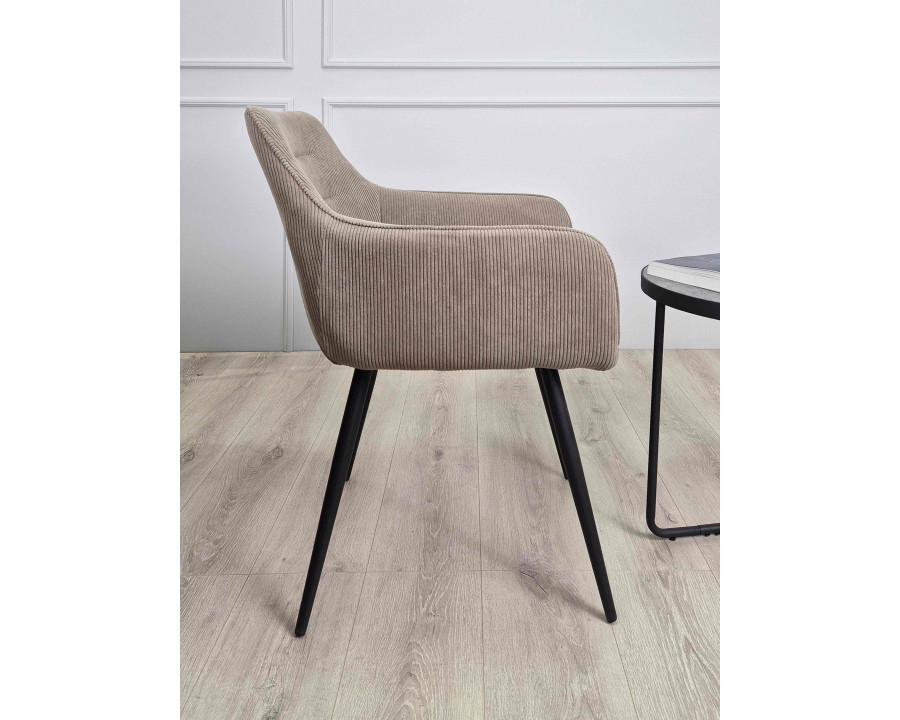 Стілець Ernest Чорний каркас / Темно-бежева тканина вельвет! Ця витончена модель від Intarsio – справжнє втілення стилю та сучасності. Завдяки високій якості та легкості цього предмету меблів, ваш інтер'єр отримає дотик вишуканості та краси. Ми дбаємо про ваше комфортне життя та здоров'я, тому використовуємо тільки екологічно чисті матеріали для виробництва цього виробу, що робить його абсолютно безпечним для вас та ваших близьких. Наш товар постачається в оригінальній упаковці, разом із докладною інструкцією та всіма необхідними комплектуючими, що дозволяє вам легко та без особливих зусиль зібрати його самостійно. Основні характеристики: