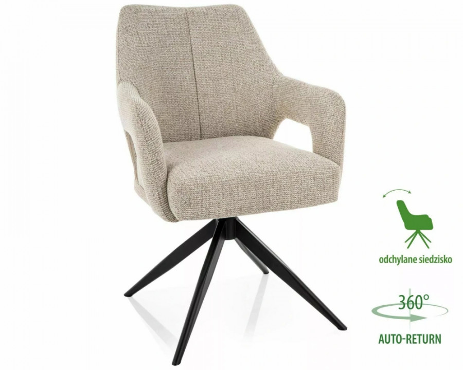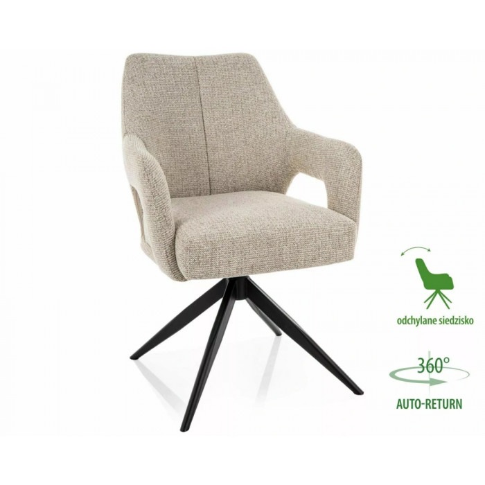 Крісло, оббивка: тканина Noelle, каркас: метал, колір: бежевий 30 / матовий чорний. Функція автоматичного повернення - сидіння обертається на 360 градусів, з функцією повернення у вихідне положення, функція нахилу сидіння.