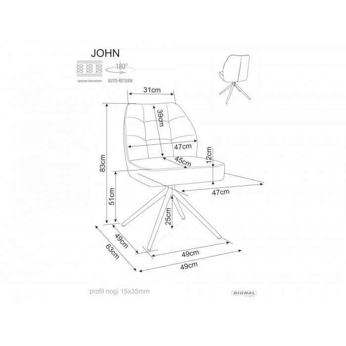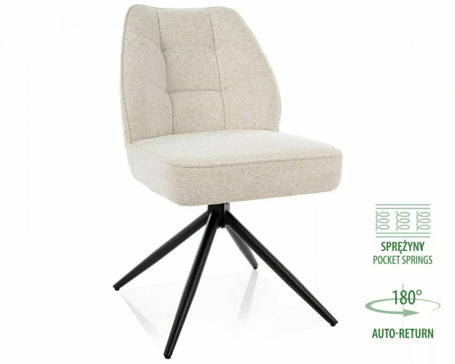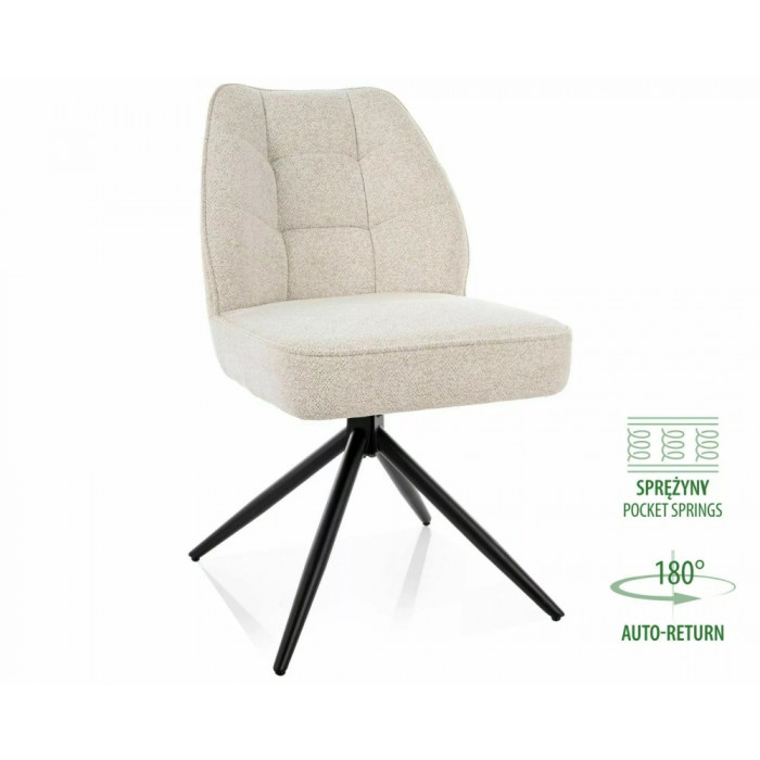 Стільце, оббивка: тканина Raven, каркас: метал, колір: світло-бежевий 22 / матово-чорний. Функція автоматичного повернення - сидіння повертається на 180 градусів, з функцією повернення у вихідне положення. Сидіння оснащене пружинами кишенькового типу.