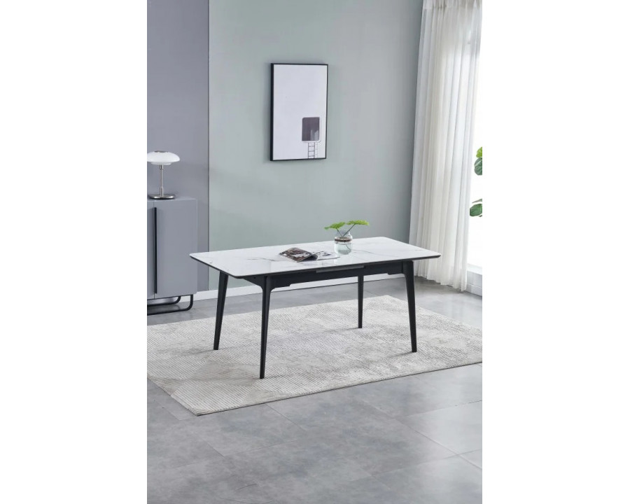 Стіл BERLIN CERAMIC білий глянець / чорний 140(180)X80