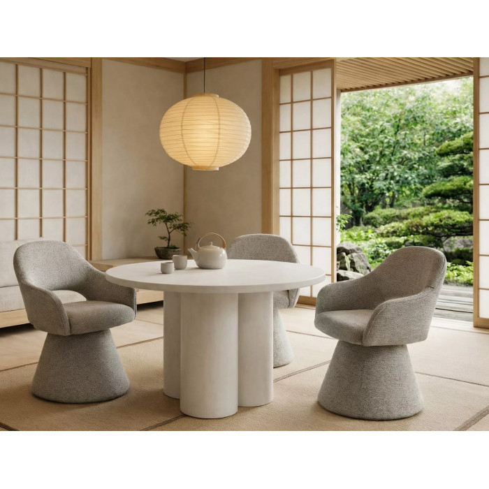 Стіл обідній кухонний Rosalia ø120 см МДФ + мікроцемент Світло-сірий / Світло-сірий каркас