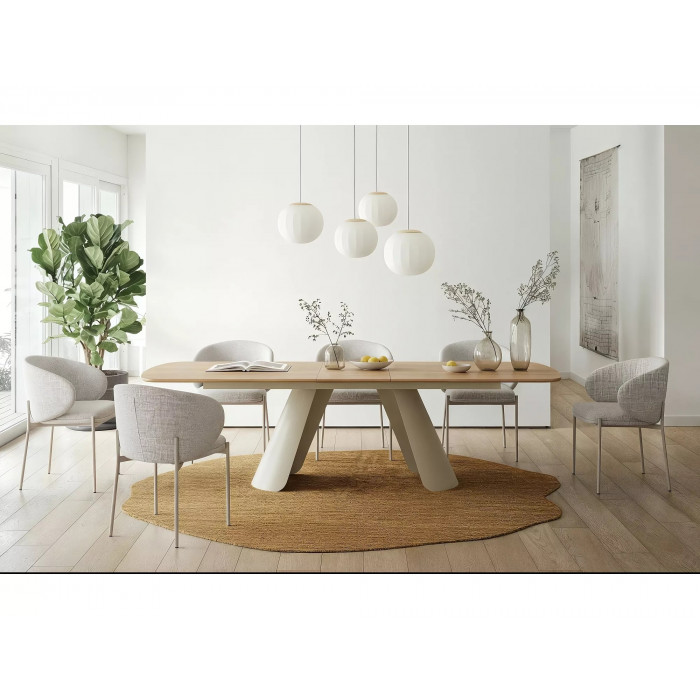 Розкладний стіл, стільниця: МДФ + натуральний шпон, каркас: метал, колір: дуб / кашемір.