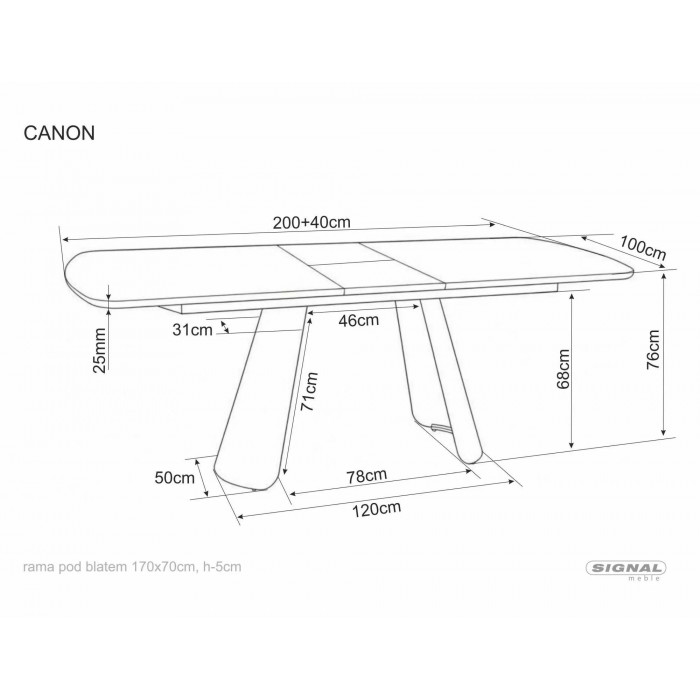 Стіл обідній кухонний розкладний Canon (200–240)×100 см Дуб / Кашемір каркас