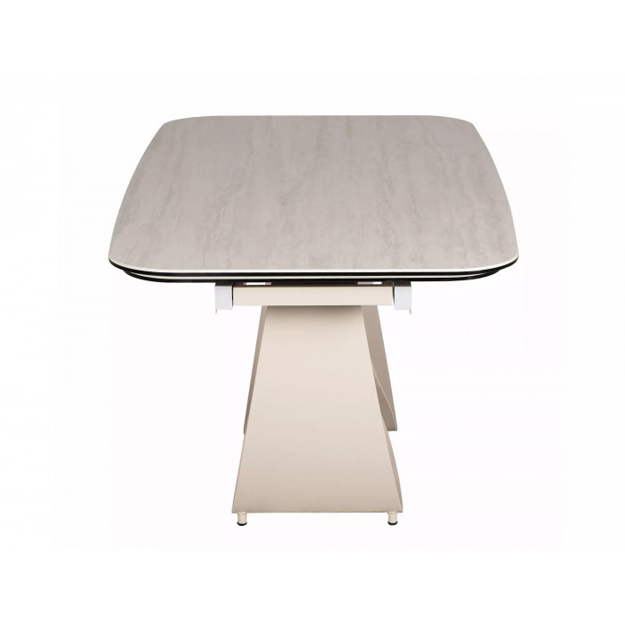 Розкладний стіл, стільниця: загартоване скло + кераміка Травертин, каркас: метал, колір: матовий бежевий / кашемір.