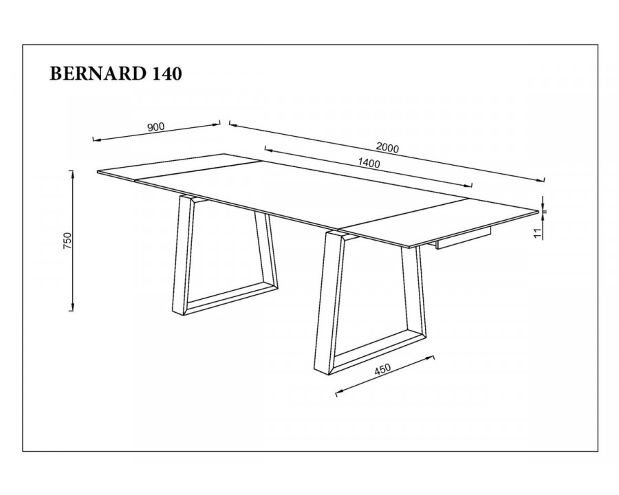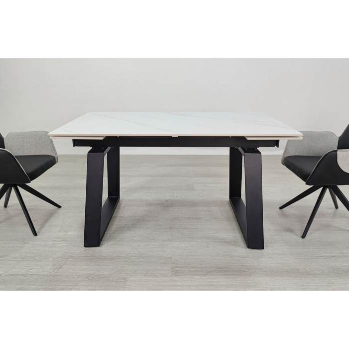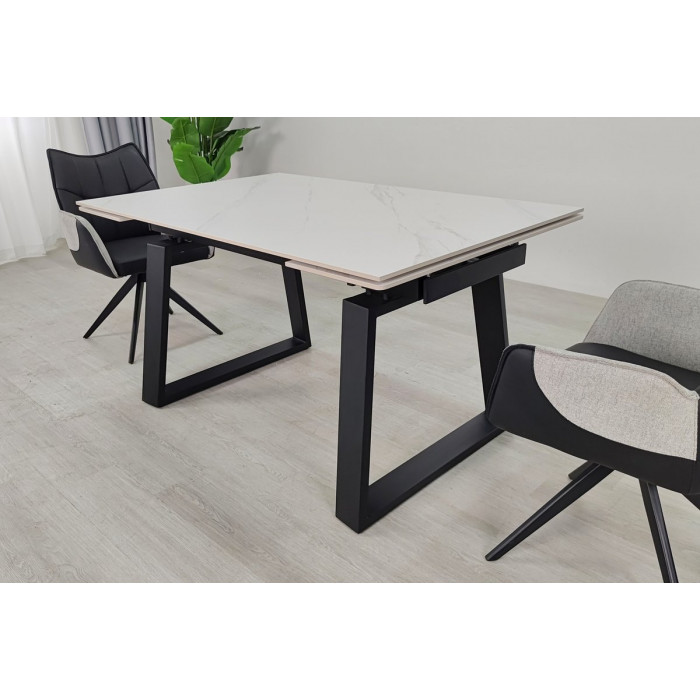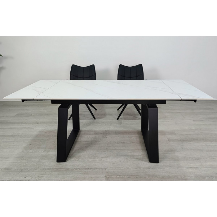 Стіл обідній розкладний BERNARD CERAMIC 140(200)*90 білий мат/чорний