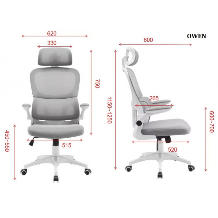 Крісло комп'ютерне OWEN сіре/білий каркас