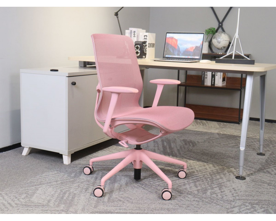 Крісло офісне REGINA рожева сітка / рожевий каркас! Ця витончена модель від Intarsio – справжнє втілення стилю та сучасності. Завдяки високій якості та легкості цього предмету меблів, ваш інтер'єр отримає дотик вишуканості та краси. Ми дбаємо про ваше комфортне життя та здоров'я, тому використовуємо тільки екологічно чисті матеріали для виробництва цього виробу, що робить його абсолютно безпечним для вас та ваших близьких. Наш товар постачається в оригінальній упаковці, разом із докладною інструкцією та всіма необхідними комплектуючими, що дозволяє вам легко та без особливих зусиль зібрати його самостійно. Основні характеристики: