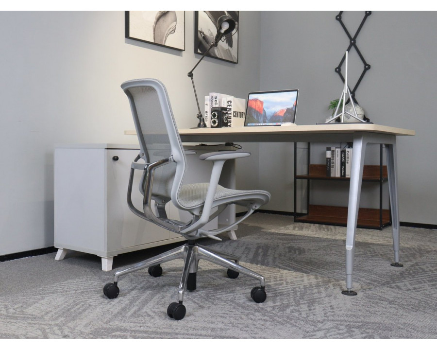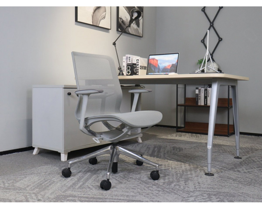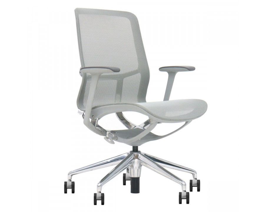 Крісло офісне REGINA сіра сітка / алюміній! Ця витончена модель від Intarsio – справжнє втілення стилю та сучасності. Завдяки високій якості та легкості цього предмету меблів, ваш інтер'єр отримає дотик вишуканості та краси. Ми дбаємо про ваше комфортне життя та здоров'я, тому використовуємо тільки екологічно чисті матеріали для виробництва цього виробу, що робить його абсолютно безпечним для вас та ваших близьких. Наш товар постачається в оригінальній упаковці, разом із докладною інструкцією та всіма необхідними комплектуючими, що дозволяє вам легко та без особливих зусиль зібрати його самостійно. Основні характеристики: