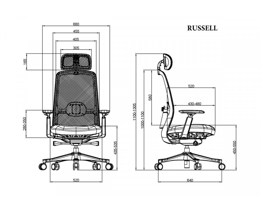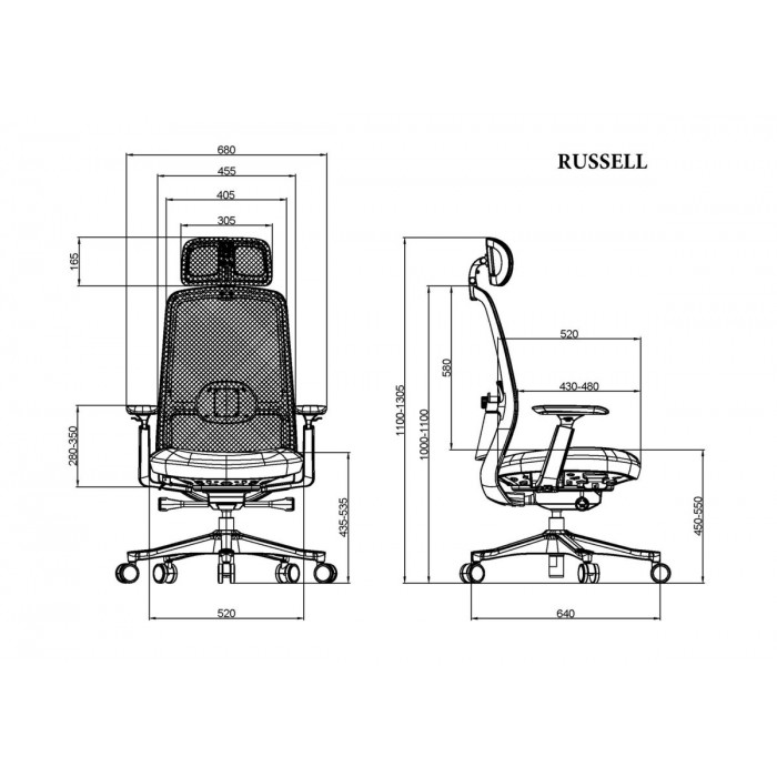 Крісло офісне RUSSELL сіра тканина / чорний каркас