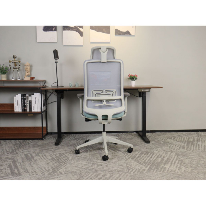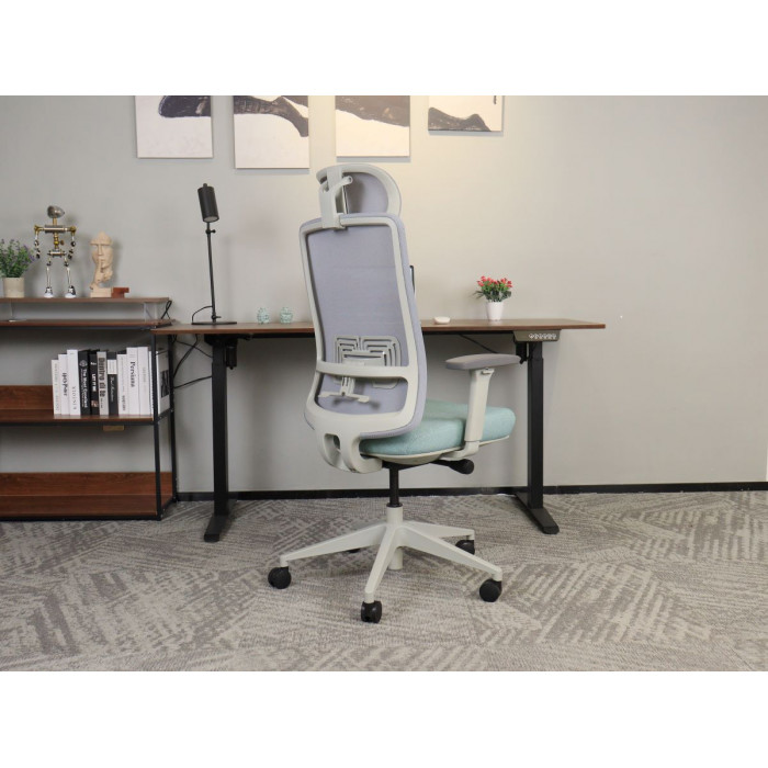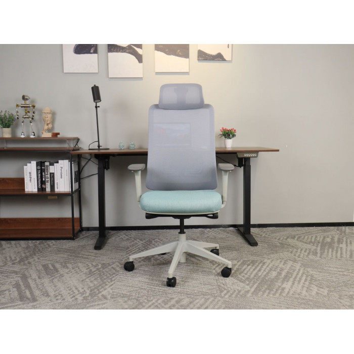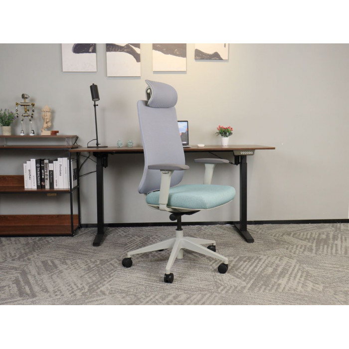 Матеріал крісла: Мембранна сітка/тканина Колір: сірий/зелений, Каркас: сірий Додаткова інформація: ергономічне офісне крісло з високою спинкою, регульований за висотою та кутом нахилу підголівник, регульована висота поперекової опори. Механізм самозавантаження (блокування в 4-х положеннях). Сидіння з тканинною оббивкою, підлокітники 3D, регулюється натяг спинки. сидіння регулюється по висоті, газліфт 4 класу, нейлонова основа, нейлонове колесо. Mаксимально допустиме навантаження – 140 кг. Розмір коробки: 73*34*65 см