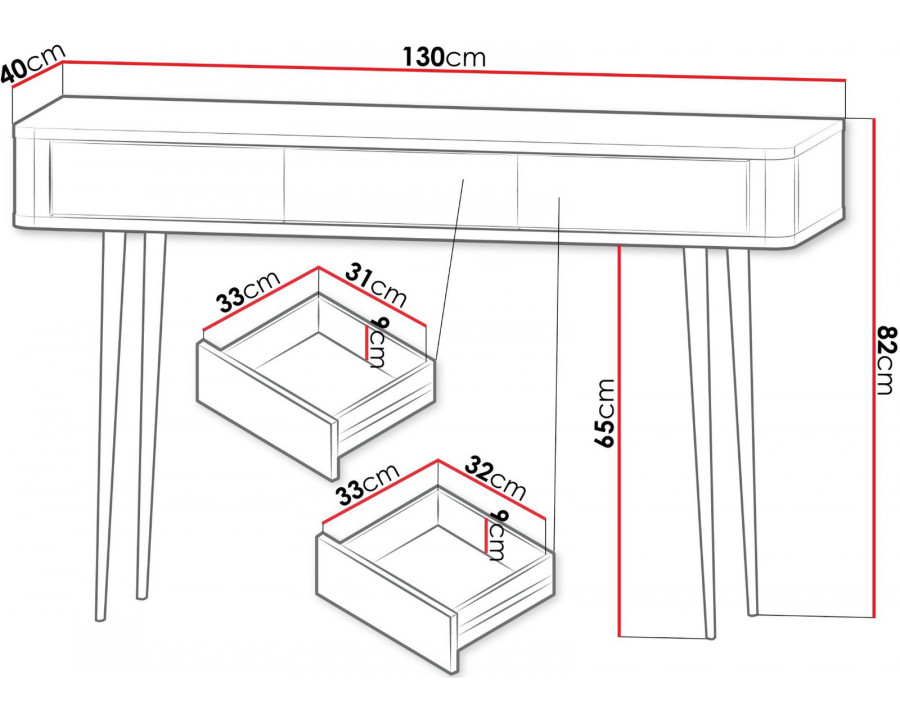 Туалетний столик MARLY REG 15 130х82х40 кашемір / сірий