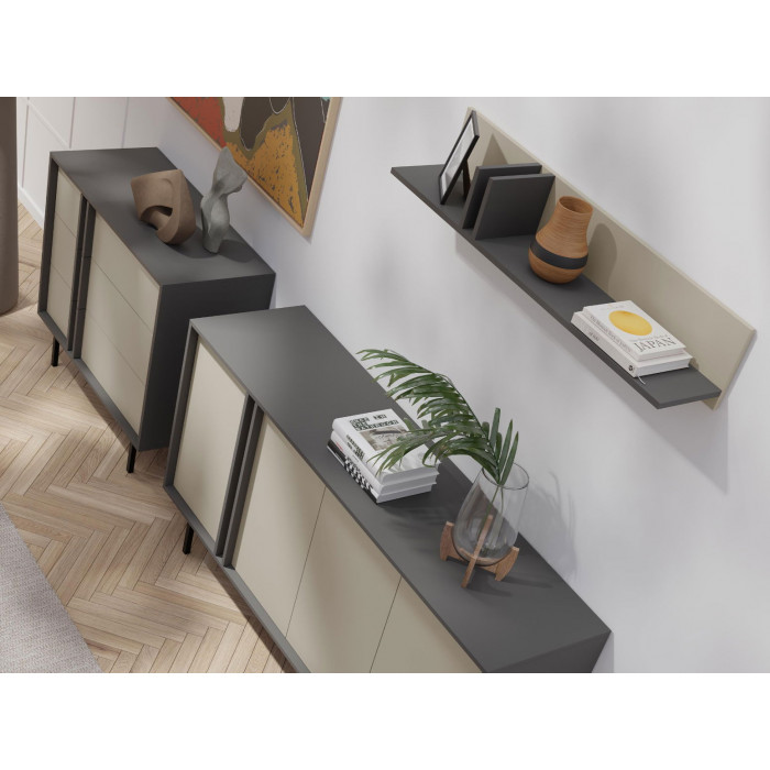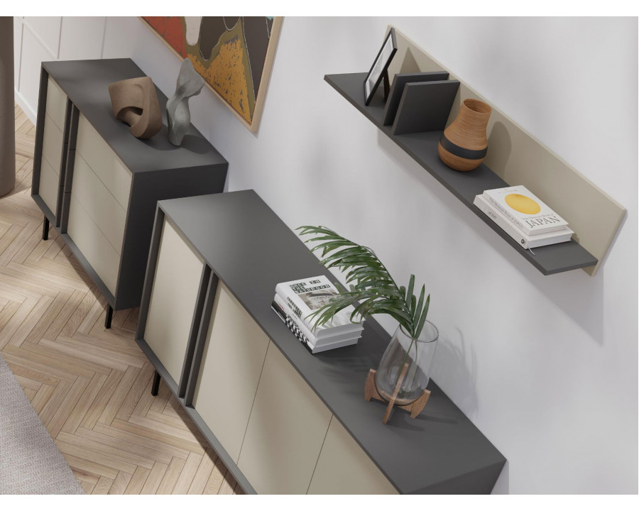 Високі естетичні та функціональні цінності є важливими факторами при виборі меблів для вітальні. Комплект ALSY – це унікальна пропозиція для всіх, хто цінує позачасовий стиль, елегантність та добротність. Сучасний дизайн, підкреслений гарним поєднанням світло-бежевого та антрацитового кольорів, привносить надзвичайно шикарний акцент та стриманий відтінок розкоші в інтер'єр. Представлений комплект меблів для вітальні не тільки виглядає привабливо, але й забезпечує комфорт використання. Відмінна якість виготовлення, багато місця для зберігання та можливість облаштування простору відповідно до індивідуальних уподобань – це переваги меблів для вітальні ALSY, які цінують наші клієнти. Вони надзвичайно практичні та ергономічні, і водночас доводять, що сила та шарм криються в простоті. Вони повністю відображають дух мінімалізму та ідеально вписуються в модні тенденції, зберігаючи позачасовий та унікальний характер. Колір: антрацит/світлий беж Ширина: 93 Висота: 87 Глибина: 43 Додаткова інформація: ЛДСП 16 мм, крайка PCV, металеві ніжки Н-18 см, пластикова ручка, механізм відкривання легким дотиком, завіса з доводчиком (плавним закриттям), направляючі - кулькові повного висуву H-35 GTV. Розміри коробок: 14,2*47*99,5 см + 2,3*31*71 см