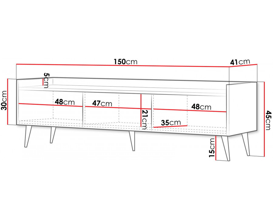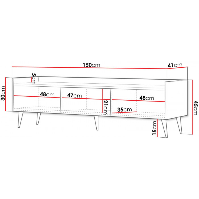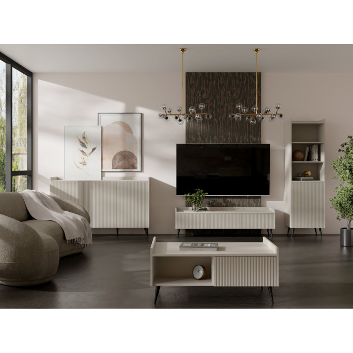 ADEMO - це унікальний комплект меблів для вітальні в сучасній атмосфері та красивих кашемірових кольорах. Ці стильні рішення розроблені з увагою до найменших деталей і стануть окрасою будь-якої вітальні, забезпечуючи при цьому максимальний комфорт використання. ADEMO - це меблі для вітальні, повністю виготовлені в Польщі. Це система без ручок з високими чорними ніжками та фасадами з МДФ. Корпуси виготовлені з найкращих видів вітчизняної сировини з використанням сучасних механізмів, що підвищують комфорт використання. Система вирізняється елегантним дизайном та функціональністю. Вона вносить у кімнату ковток свіжості та креативності. Її легко адаптувати до потреб сучасної вітальні. Колір: кашемір/кашемір Ширина: 150 Висота: 45 Глибина: 41 Додаткова інформація: корпус - ЛДСП 16 мм, крайка PCV, фасади - МДФ 18 мм, металеві ніжки Н-15 см, направляючі - кулькові повного висуву H-35 GTV, механізм відкривання легким дотиком (система TIP-ON) + закрилки. Розмір коробки: 8,2*40*167 см
