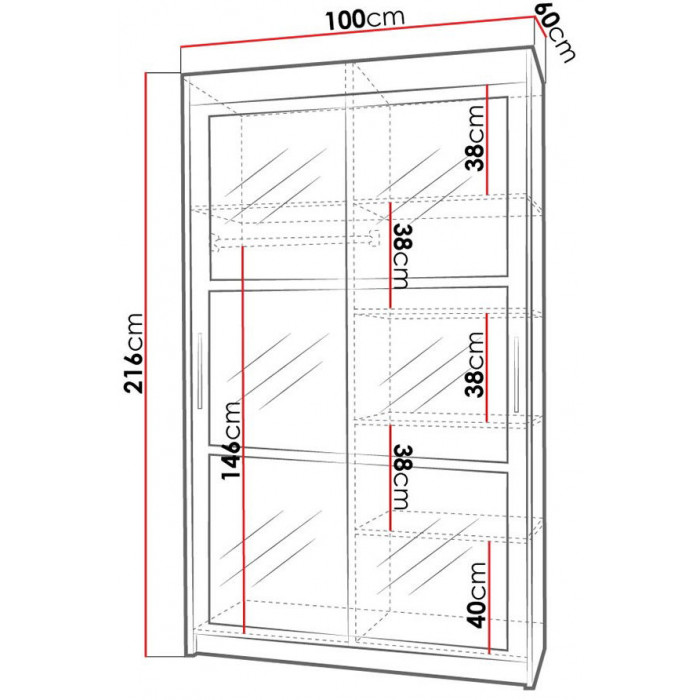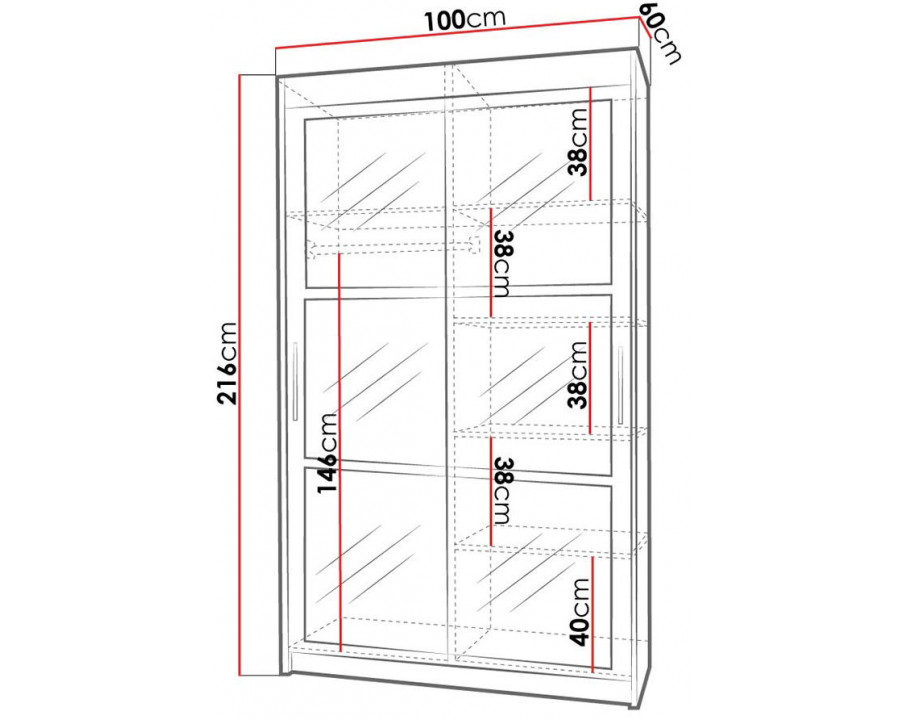 Шафи є незамінним елементом будь-якого інтер'єру. Це стосується практично кожної кімнати, незалежно від того, чи це передпокій, чи спальня. Цей тип меблів визначає організацію та естетику певного простору. Для виробника шаф проектування такого типу меблів є завданням, яке вимагає врахування багатьох факторів. Це включає, серед іншого, такі важливі фактори, як практичність, ергономіка та естетика. Тому варто звернути увагу на особливості шаф, які дозволять вам урізноманітнити вашу пропозицію з точки зору якомога ширшої цільової групи клієнтів. Колір: білий/білий Ширина: 100 Висота: 216 Глибина: 60 Додаткова інформація: ЛДСП 16 мм, крайка паперова, пластикова ручка, розсувна алюмінієва система LAGUNA, направляюча рейка монтується до верхньої частини шафи. Розміри коробок: 5,4*60*219 см + 11*52*101 см + 4*50,5*209 см