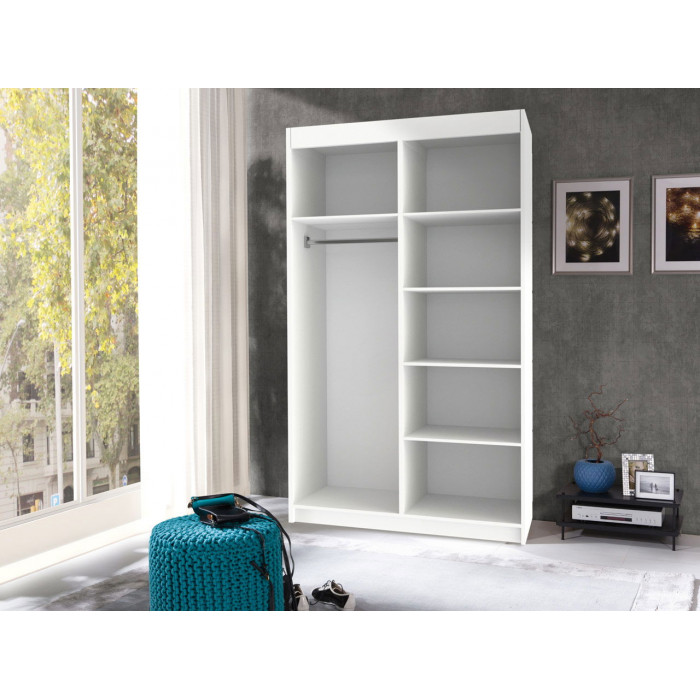 Шафи є незамінним елементом будь-якого інтер'єру. Це стосується практично кожної кімнати, незалежно від того, чи це передпокій, чи спальня. Цей тип меблів визначає організацію та естетику певного простору. Для виробника шаф проектування такого типу меблів є завданням, яке вимагає врахування багатьох факторів. Це включає, серед іншого, такі важливі фактори, як практичність, ергономіка та естетика. Тому варто звернути увагу на особливості шаф, які дозволять вам урізноманітнити вашу пропозицію з точки зору якомога ширшої цільової групи клієнтів. Колір: білий/білий Ширина: 100 Висота: 216 Глибина: 60 Додаткова інформація: ЛДСП 16 мм, крайка паперова, пластикова ручка, розсувна алюмінієва система LAGUNA, направляюча рейка монтується до верхньої частини шафи. Розміри коробок: 5,4*60*219 см + 11*52*101 см + 4*50,5*209 см