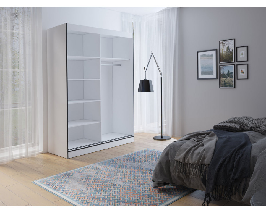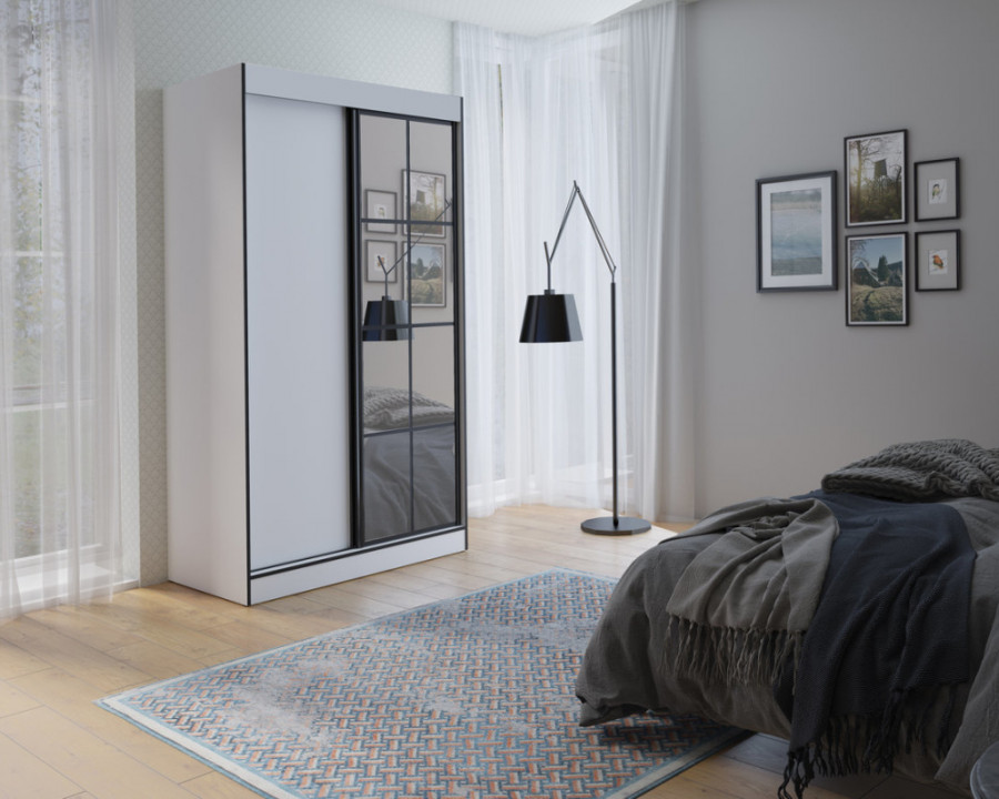 Шафи є незамінним елементом будь-якого інтер'єру. Це стосується практично кожної кімнати, незалежно від того, чи це передпокій, чи спальня. Цей тип меблів визначає організацію та естетику певного простору. Для виробника шаф проектування такого типу меблів є завданням, яке вимагає врахування багатьох факторів. Це включає, серед іншого, такі важливі фактори, як практичність, ергономіка та естетика. Тому варто звернути увагу на особливості шаф, які дозволять вам урізноманітнити вашу пропозицію з точки зору якомога ширшої цільової групи клієнтів. Колір: білий/чорний Ширина: 120 Висота: 216 Глибина: 65 Додаткова інформація: ЛДСП 16 мм, крайка паперова, алюмінієва ручка, розсувна алюмінієва система LAGUNA з регулюванням, направляюча рейка монтується до нижньої частини шафи. Розміри коробок: 4,9*65,5*219 см + 10,3*65,5*120,5 см + 4*67*204,5 см