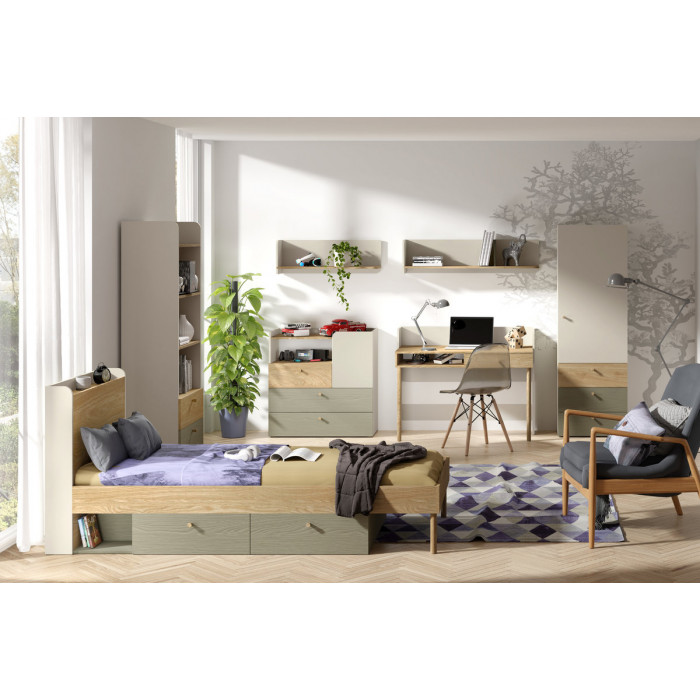 Правильно організований простір для навчання та проведення вільного часу, безумовно, є найбільшим надбанням кімнати підлітка. Цього ефекту можна досягти за допомогою унікальних меблів для дитячої кімнати з колекції YUKI. Вони характеризуються високою корисністю та забезпечують багато місця для зберігання різних речей, що допомагає підтримувати порядок у кімнаті. Представлені молодіжні меблі мають високий стандарт виготовлення, що робить їх чудовою інвестицією на багато років. Декор кімнати студента повинен поєднувати естетику та функціональність, саме тому меблі YUKI для дитячої кімнати як найважливіший елемент обладнання є цільовою метою. Зручність та комфорт щоденного використання йдуть рука об руку з сучасним виглядом, витриманим у мінімалістичному стилі. Прості форми, приємні кольори та легкість розташування характеризуються позачасовим характером, що дозволяє легко адаптувати меблі до змінних уподобань молодої людини. Колір: сіро-бежевий/дуб олійний/евкаліптовий Ширина: 90 Висота: 185 Глибина: 60 Додаткова інформація: ЛДСП 16 мм, крайка PCV, пластикові ніжки, пластикова ручка, завіса з доводчиком (плавним закриттям), направляючі - кулькові повного висуву H-35 GTV. Розміри коробок: 8,4*59,2*187 см + 11,2*59*91 см + 7,2*35,7*93,5 см Глибина: 60, Ширина: 90, Висота: 185, Країна виробник: Польща, Кількість висувних ящиків: 3, Кількість дверей: 2, Матеріал: ЛДСП, Тип шафи: Розпашні шафи, Колір: Дуб / Сірий