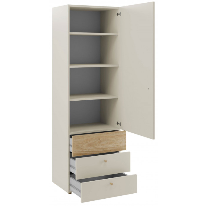 Оформляючи кімнату підлітка, потрібно враховувати різні особливості. Одним з найважливіших питань є вибір правильних дитячих меблів, які дозволять створити комфортний та функціональний простір. Ми хотіли б рекомендувати вам молодіжний меблевий гарнітур YUKI сіро-бежевого/промасленого дуба, який характеризується відмінною якістю, завдяки якій служитиме довго. Він виготовлений з увагою до найдрібніших деталей, що перетворюється на високі експлуатаційні характеристики. Елегантний мінімалізм завжди ідеально підходить для кімнати студента. Розробляючи дитячі меблі з колекції YUKI, ми подбали про те, щоб їх дизайн відповідав уподобанням молоді. Універсальний вигляд цього гарнітуру дозволяє легко облаштувати інтер'єр відповідно до вподобань дитини. Меблі також забезпечують багато місця для зберігання різних речей та демонстрації улюблених предметів. Їх легко доповнити різними аксесуарами, завдяки яким можна швидко змінити характер інтер'єру. Колір: сіро-бежевий/дуб олійний Ширина: 60 Висота: 185 Глибина: 40 Додаткова інформація: ЛДСП 16 мм, крайка PCV, пластикові ніжки, пластикова ручка, завіса з доводчиком (плавним закриттям), направляючі - кулькові повного висуву H-35 GTV. Розміри коробок: 8,3*60*187 см + 9*35,7*63,5 см