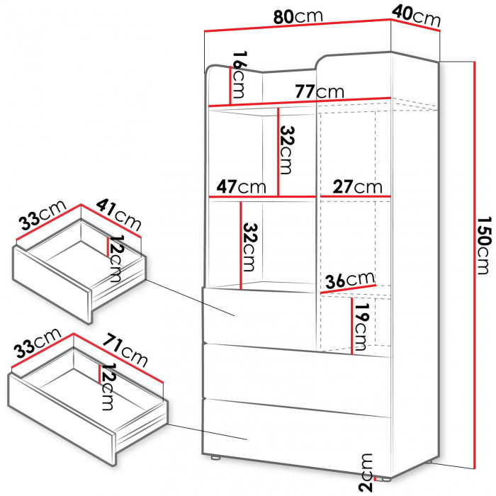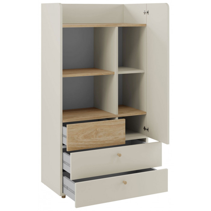 Правильно організований простір для навчання та проведення вільного часу, безумовно, є найбільшим надбанням кімнати підлітка. Цього ефекту можна досягти за допомогою унікальних меблів для дитячої кімнати з колекції YUKI. Вони характеризуються високою корисністю та забезпечують багато місця для зберігання різних речей, що допомагає підтримувати порядок у кімнаті. Представлені молодіжні меблі мають високий стандарт виготовлення, що робить їх чудовою інвестицією на багато років. Декор кімнати студента повинен поєднувати естетику та функціональність, саме тому меблі YUKI для дитячої кімнати як найважливіший елемент обладнання є цільовою метою. Зручність та комфорт щоденного використання йдуть рука об руку з сучасним виглядом, витриманим у мінімалістичному стилі. Прості форми, приємні кольори та легкість розташування характеризуються позачасовим характером, що дозволяє легко адаптувати меблі до змінних уподобань молодої людини. Колір: сіро-бежевий/дуб олійний/евкаліптовий Ширина: 80 Висота: 150 Глибина: 40 Додаткова інформація: ЛДСП 16 мм, крайка PCV, пластикові ніжки, пластикова ручка, завіса з доводчиком (плавним закриттям), направляючі - кулькові повного висуву H-35 GTV. Розміри коробок: 11,7*53*152 см + 7,2*35,7*83,5 см