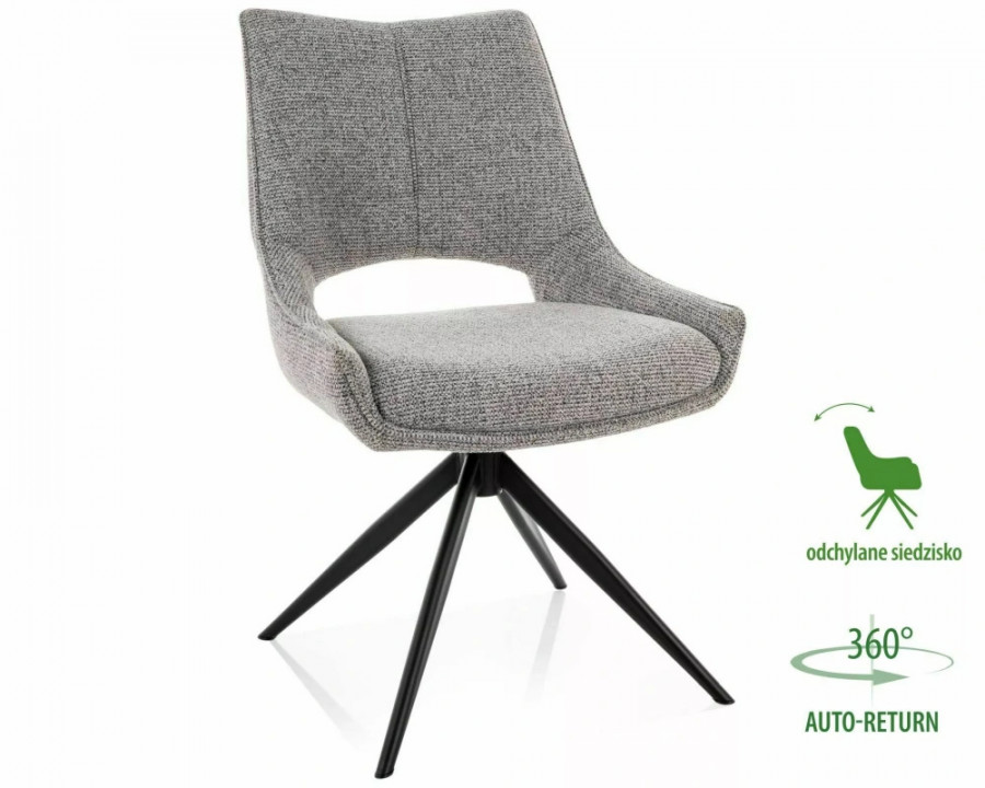 Крісло, оббивка: тканина Noelle, каркас: метал, колір: сірий 09 / матовий чорний. Функція автоматичного повернення - сидіння обертається на 360 градусів, з функцією повернення у вихідне положення, функція нахилу сидіння.