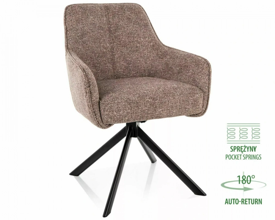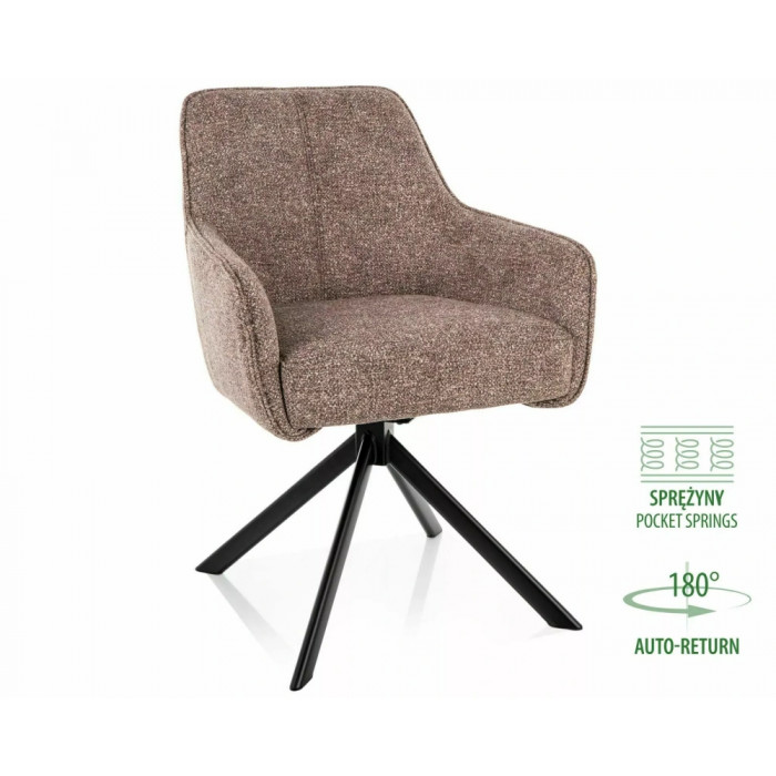 Крісло, оббивка: тканина Leo, каркас: метал, колір: темно-бежевий 32 / матово-чорний. Функція автоматичного повернення - сидіння повертається на 180 градусів, з функцією повернення у вихідне положення. Сидіння оснащене пружинами кишенькового типу.