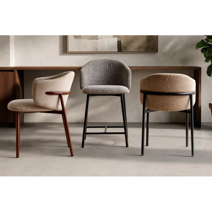 Стілець кухонний обідній м'який Osaka Бежева тканина / Чорний каркас