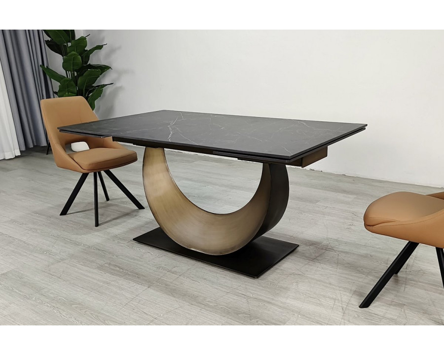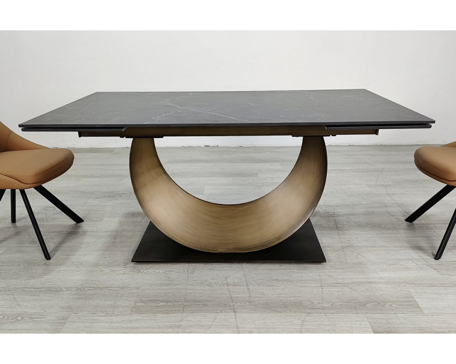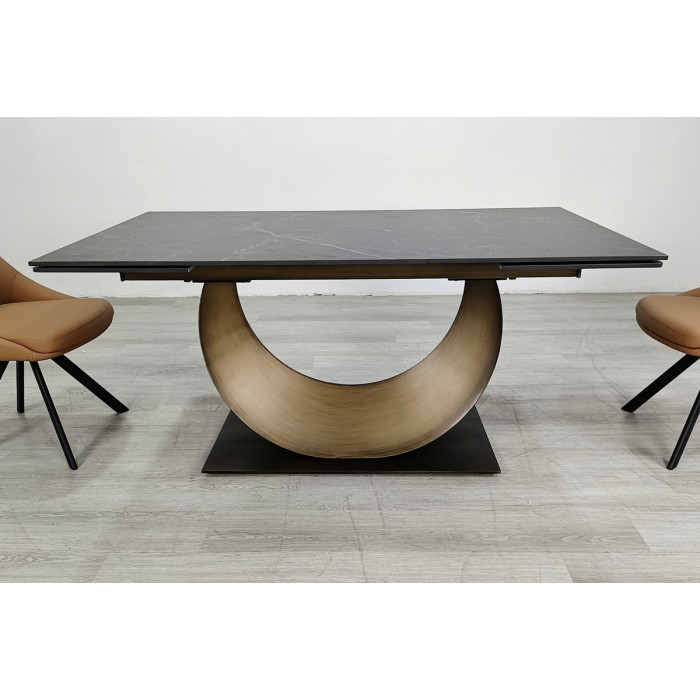Стіл обідній розкладний AMELIA CERAMIC 160(240)*90 стіл чорний мат/бронзовий