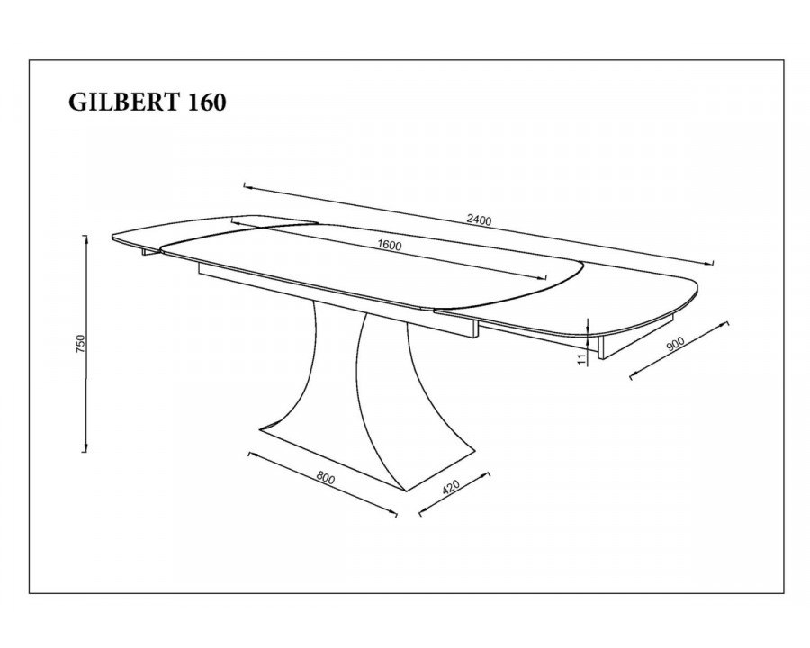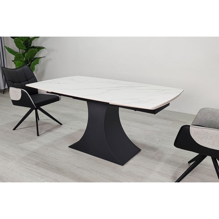 Стіл обідній розкладний GILBERT CERAMIC 160(240)*90 білий мат/чорний