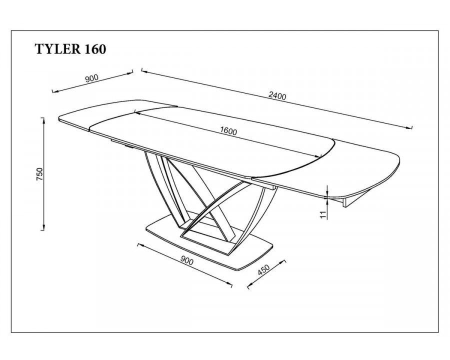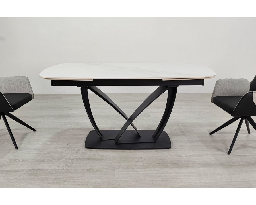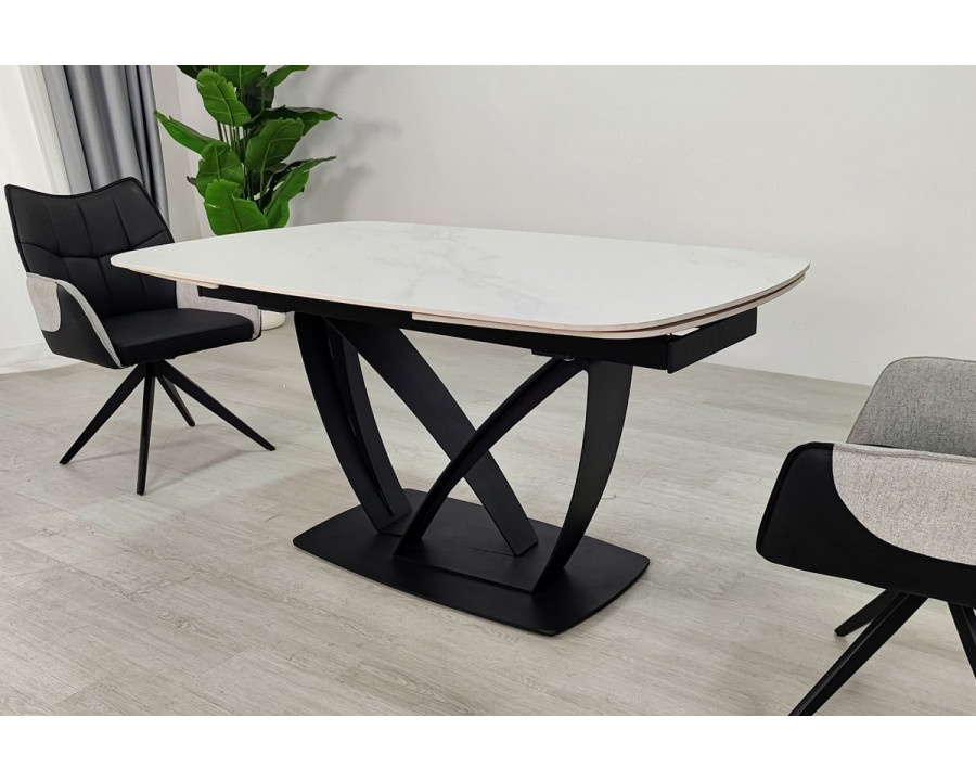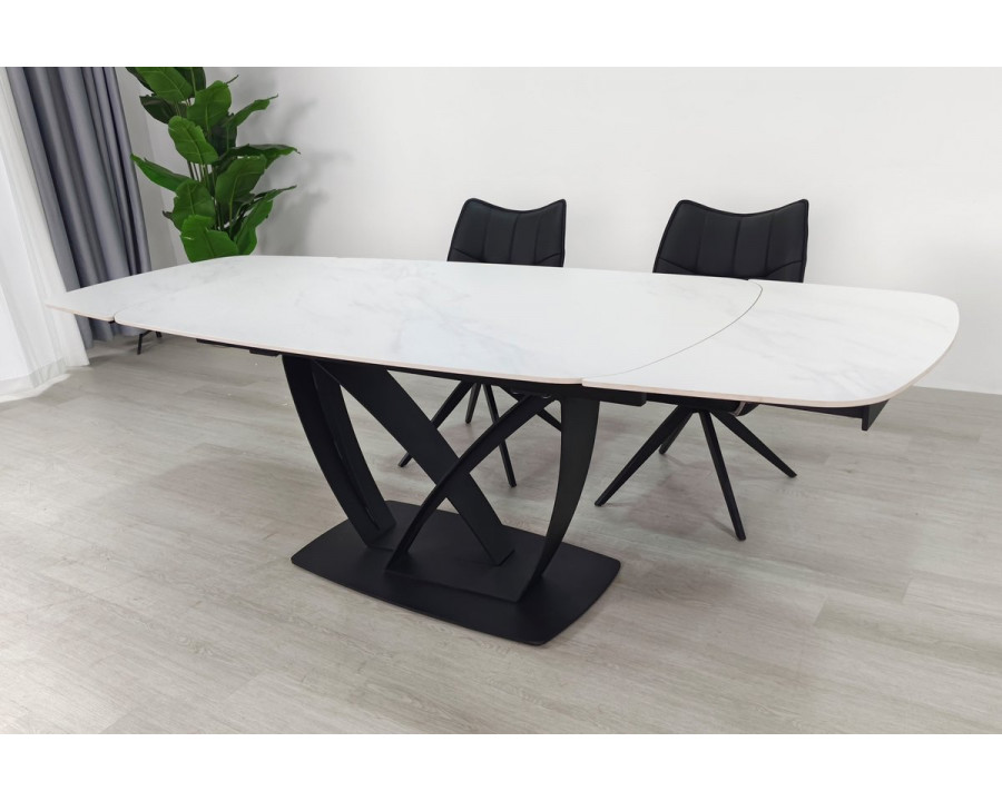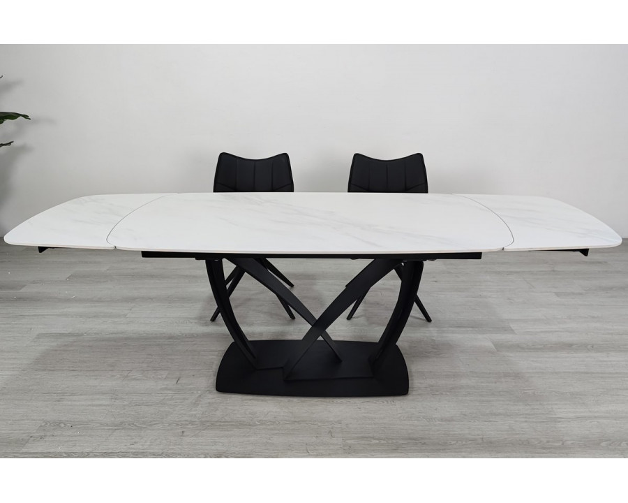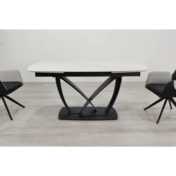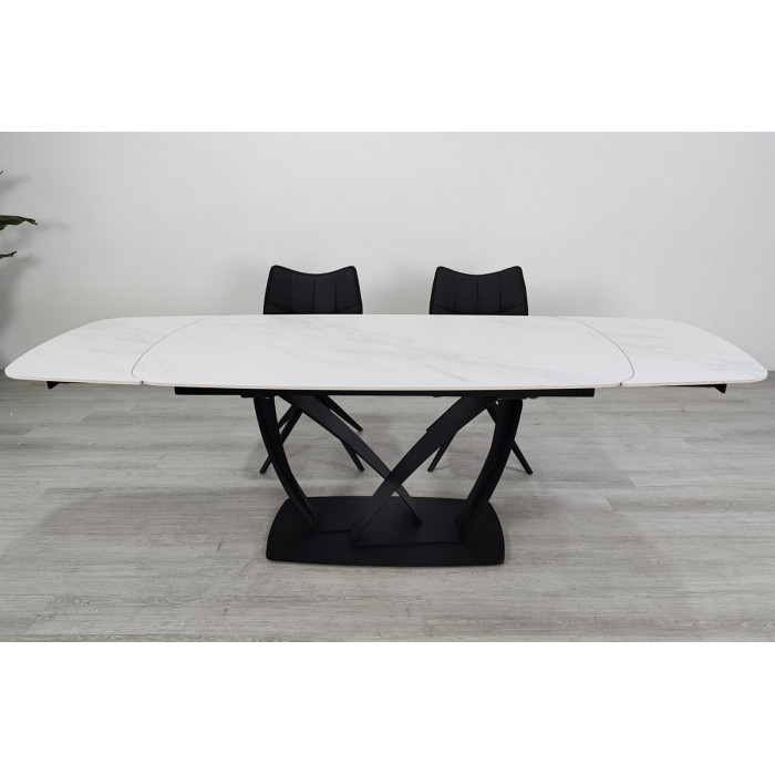 Стіл обідній розкладний TYLER CERAMIC 160(240)*90 білий мат/чорний